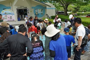 5月5日こどもの日に「アメリカザリガニ釣り大会」を開催しました。午前9時受付開始でしたが8時過ぎからたくさんの参加希望者が集まり開始と同時に参加定員に達してしまいました。
