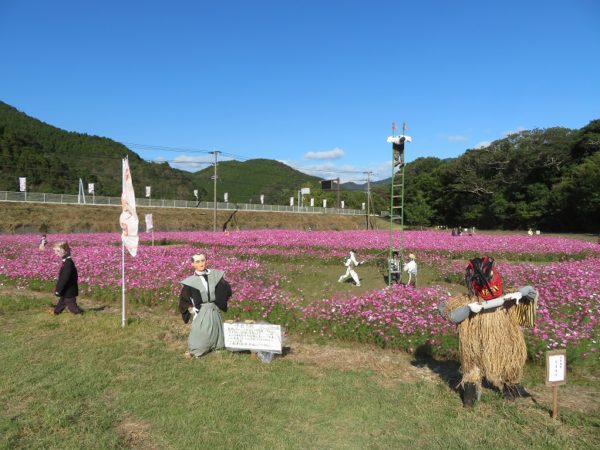 現在、ひむか遊パークうみウララ特別企画「コスモス&かかしフェスタ」が開催中です。約3000平方メートルの畑一面に咲くコスモス&熊本県高森町からやって来たユニークなかかしたちをお楽しみください。見学無料。専用駐車場あり。